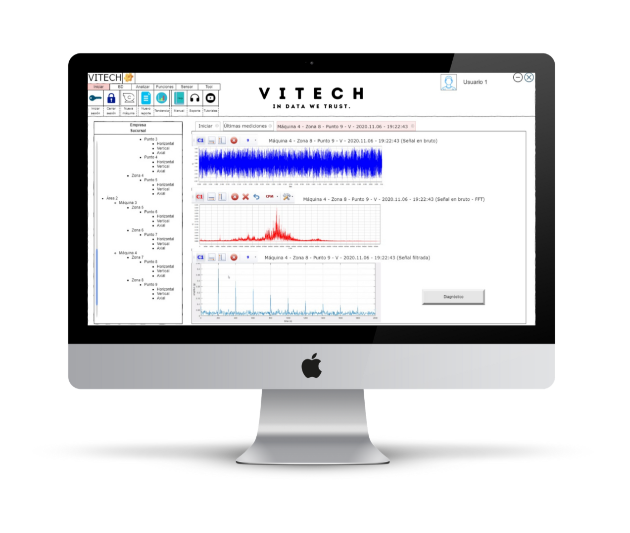 VITECH captura datos de vibración y de proceso en alta resolución, aplica análisis avanzado de señales y detecta indicios tempranos de falla. Los ingenieros reciben diagnósticos claros, paneles de tendencias y alertas automáticas para planificar intervenciones, reducir paradas y extender la vida útil, en sitio o en la nube, con integración OPC-UA/Modbus.