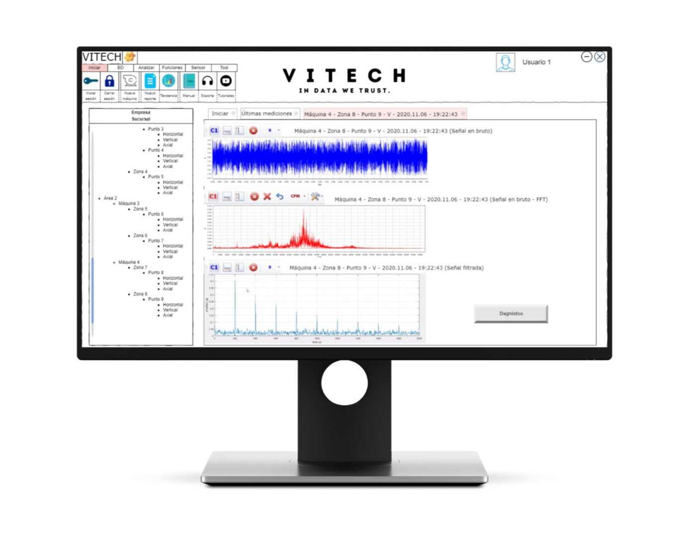 VITECH es una plataforma de monitoreo y diagnóstico avanzado para equipos industriales. Utiliza analítica de señales y modelos determinísticos para detectar fallas con hasta seis meses de anticipación, reduciendo paradas no planificadas y mejorando la continuidad operativa hasta un 99,9 %